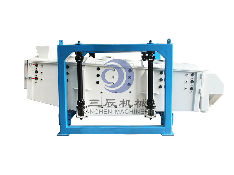 篩機(jī)啟動(dòng)后,篩機(jī)搖動(dòng)體即篩箱在慣性力的作用下作前后往復(fù)運(yùn)動(dòng),篩箱帶動(dòng)篩面作周期性搖動(dòng),從而使篩面上的物料隨篩箱一同作定向跳式運(yùn)動(dòng),期間,小于篩面孔徑的物理通過篩孔落到下層,成為篩下物,大于篩面孔徑的物料經(jīng)連續(xù)翻滾跳運(yùn)動(dòng)后從排料口排出,完成篩分工作。